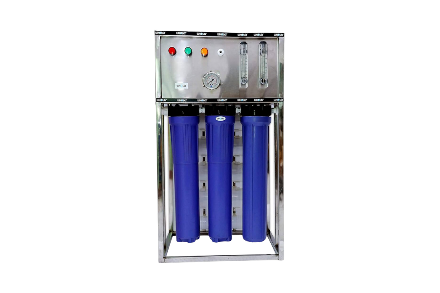 - Robust high-pressure pump in SS 304 construction pushes the water to RO membranes.